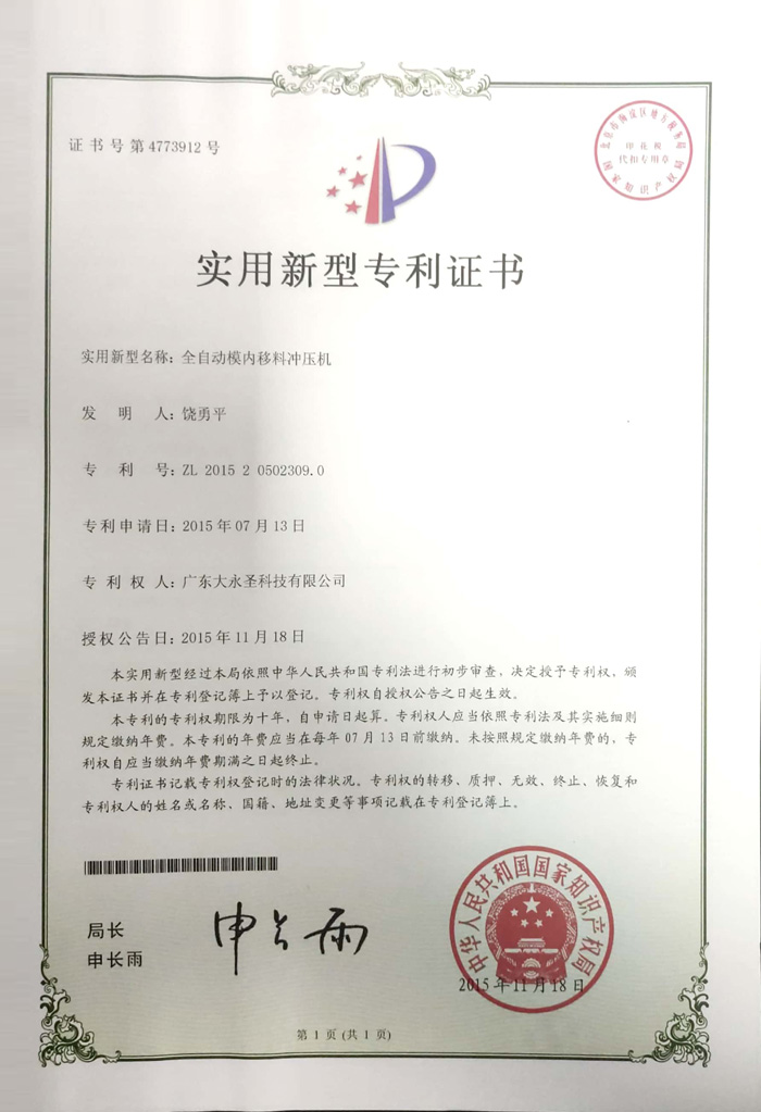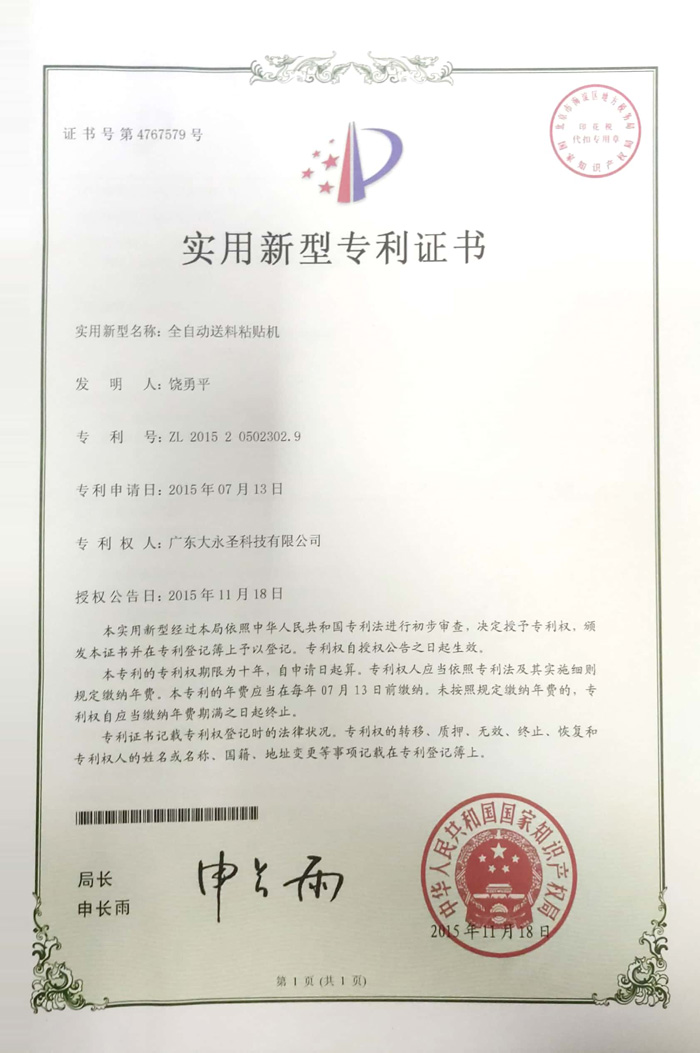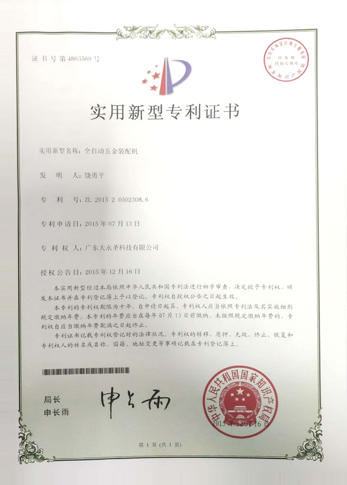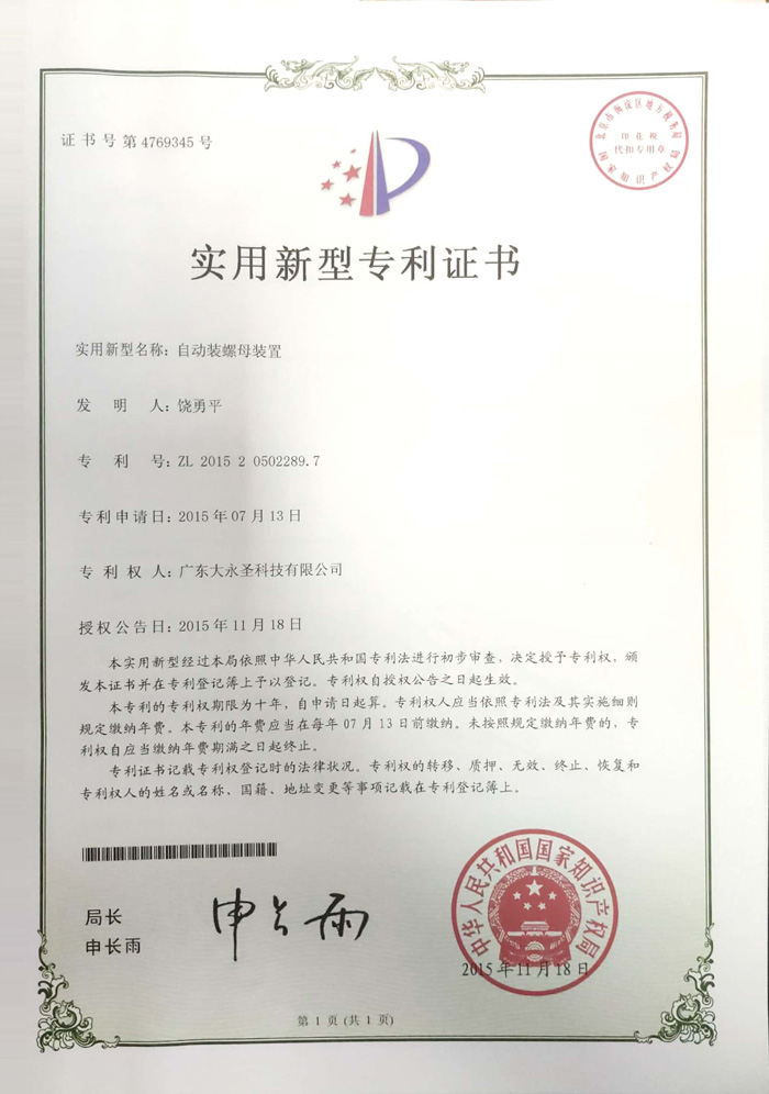 實用新型專利證書