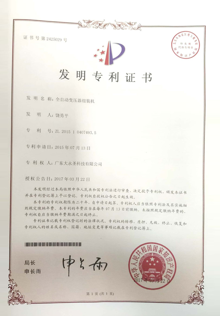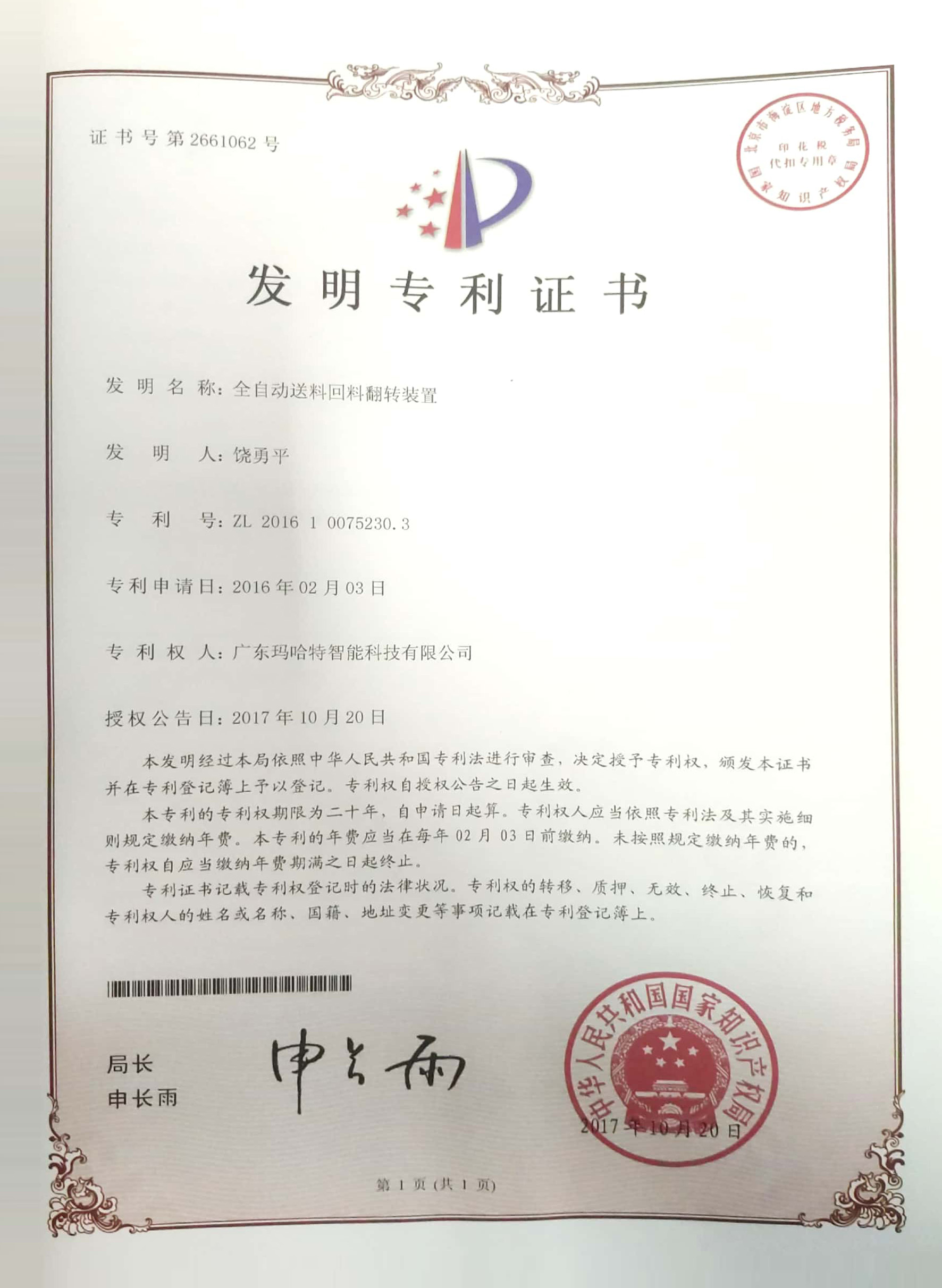 發(fā)明專利證書